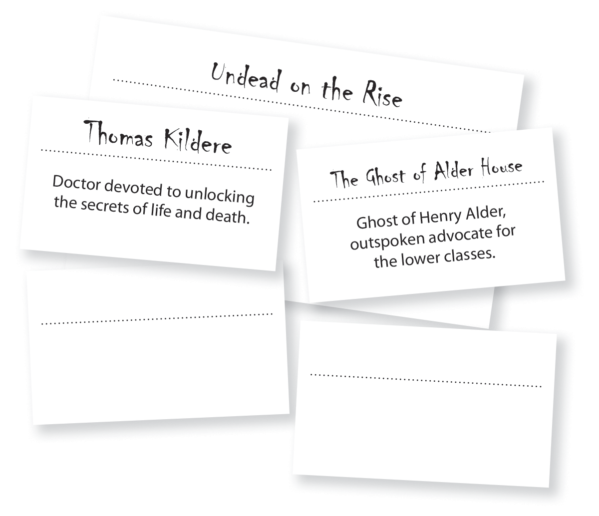 At the start of play, explain the current issue to your players and ask them to fill in one or two additional faces associated with the issue. These extra characters will provide new plot hooks and twists to tie your players more deeply to the strange phenomena they face as necromancers. Then ask your players to choose from one of the two available impending issues: Those Who Meddle and End of the World. Have them fill in one or two additional faces for their chosen impending issue, as well, rounding out the larger cast of characters.