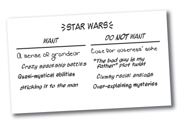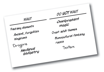 Here’s why: your “must haves” and “must avoids” make an excellent starting point for talking about what game you’re going to make.